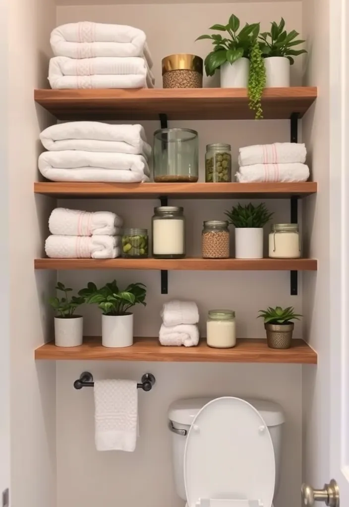 This design choice adds a casual yet curated feel to the space. Make sure to keep the shelves organized and styled to prevent a cluttered look—this clever tip can create a visually pleasing arrangement that enhances your bathroom’s charm.