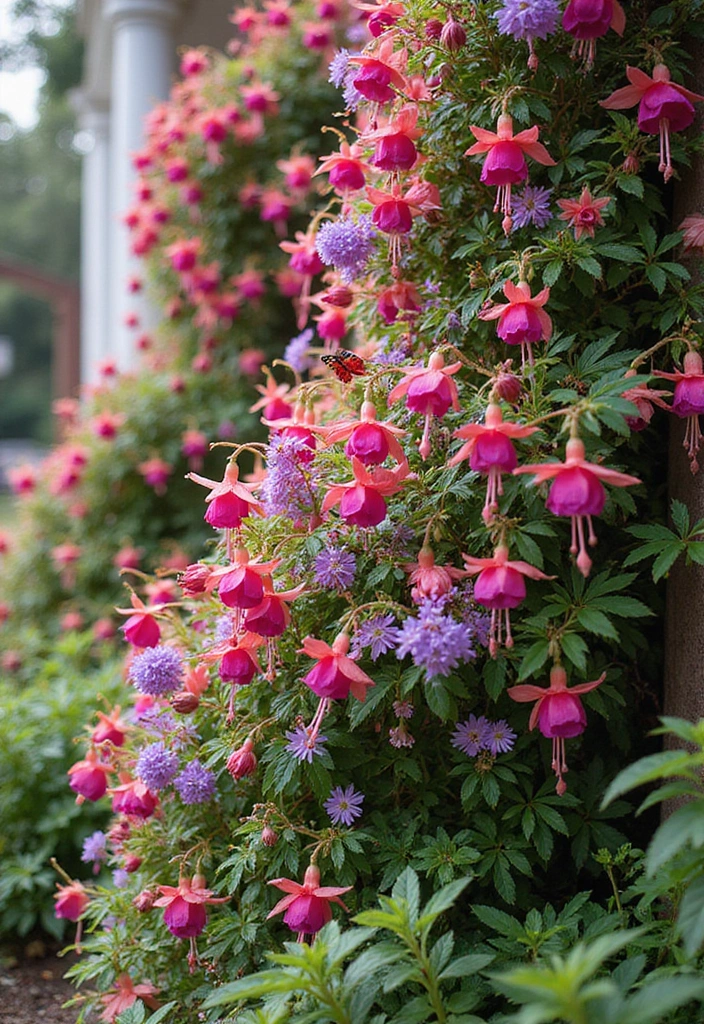 Fuchsia is a delightful climbing plant known for its colorful, drooping flowers.
