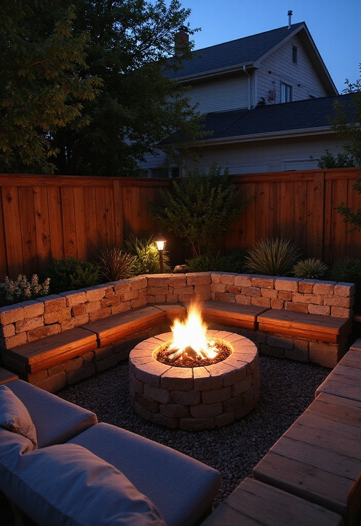 This setup encourages friends and family to gather, roast marshmallows, and share stories under the stars. To enhance the experience, consider incorporating a seating wall made from natural stones or recycled concrete.