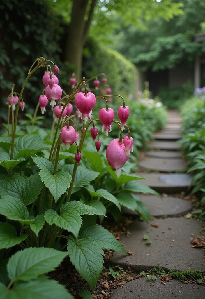 With its heart-shaped flowers that dangle from arching stems, it creates a beautiful display that captures attention. Bleeding Heart prefers partial shade and thrives in well-drained soil, making it ideal for shady spots in your garden.