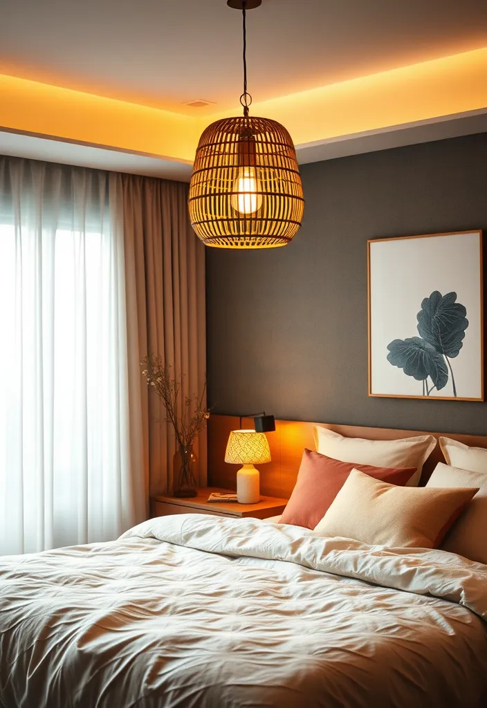 Lighting plays a crucial role in setting the mood of your Japandi bedroom. Choose statement lighting fixtures that combine functionality with aesthetic appeal.