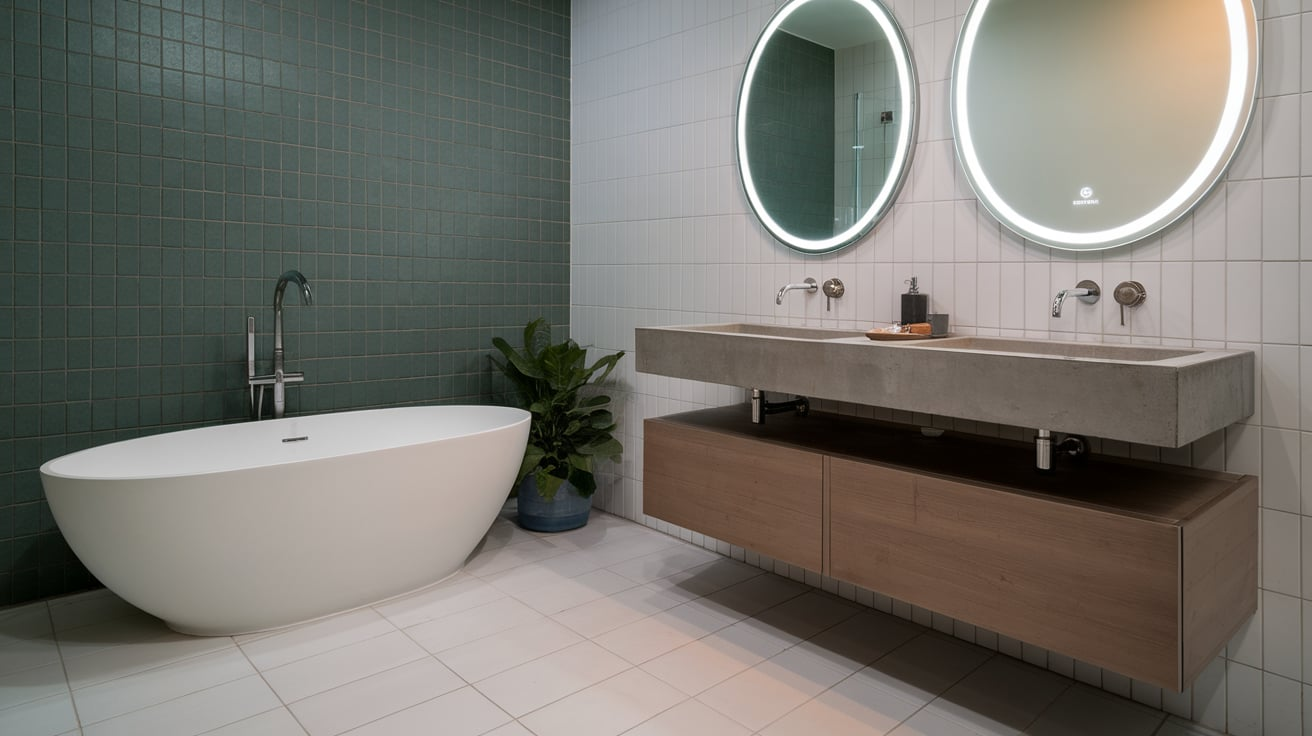 While neutral palettes dominate, bold pops of color—like emerald green vanities or cobalt blue tiles—are stealing the show. I painted a bathroom vanity navy once, and it completely transformed the room for less than $100.