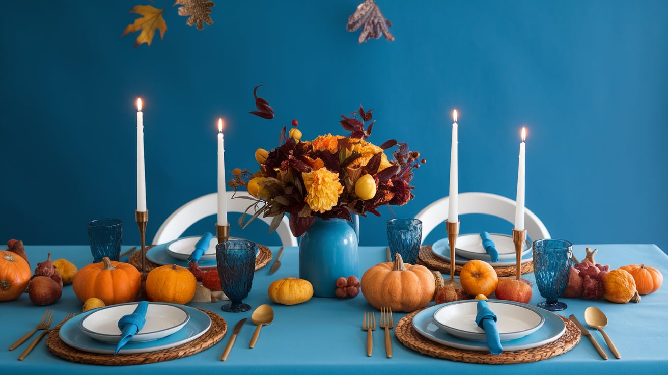 Thanksgiving traditions often lean heavily on oranges, reds, and browns, but incorporating blue decor instantly elevates the holiday.