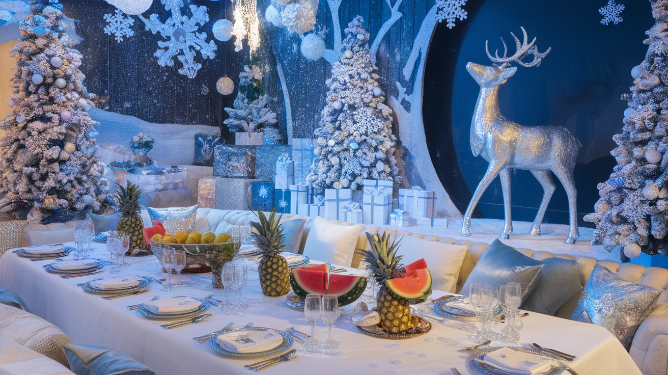 Since July isn’t about snow, blend Christmas decor with a beach vibe. Imagine Santa in flip-flops, pineapples wearing Santa hats, and stockings hanging on palm trees. A tropical Christmas theme lets you combine red and green with bright yellows, turquoise, and coral.