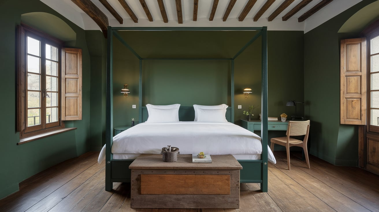 Rotate forest green accessories seasonally: heavier velvet in winter, lighter linens in summer. It keeps the bedroom feeling fresh without redecorating from scratch.