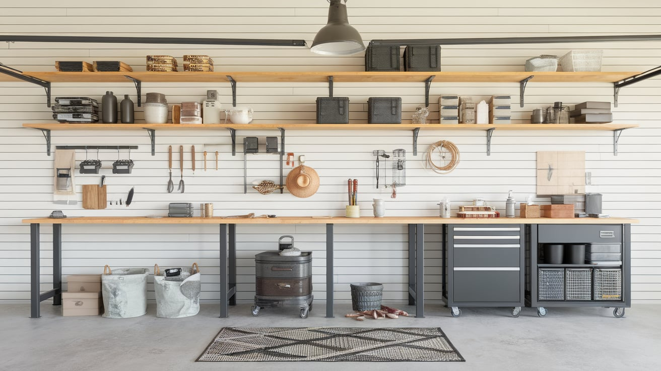 Tools scattered in drawers or bins waste more time than you’d imagine. A pegboard wall or a slatwall system turns your tools into a visible, accessible display.