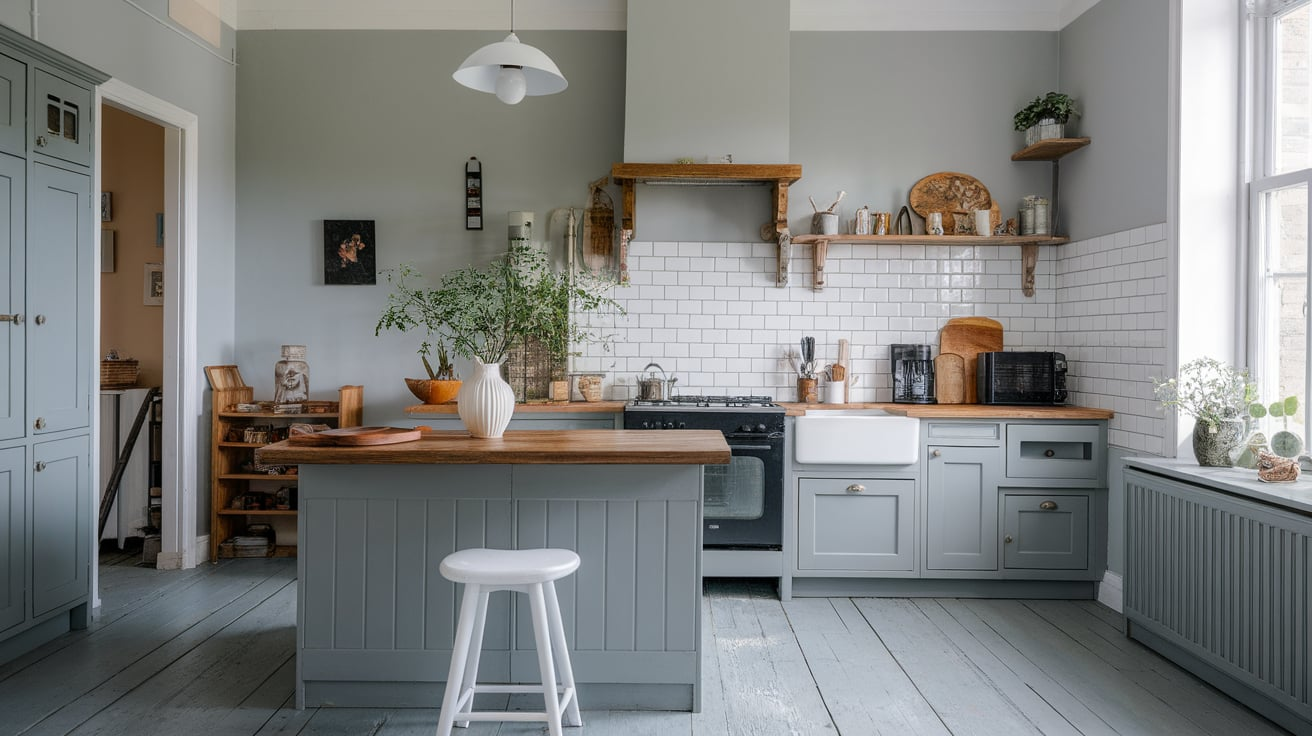 Scandinavian design often uses pale grey tones with clean lines, light wood, and minimal clutter. The result is a calming, functional kitchen that feels serene.