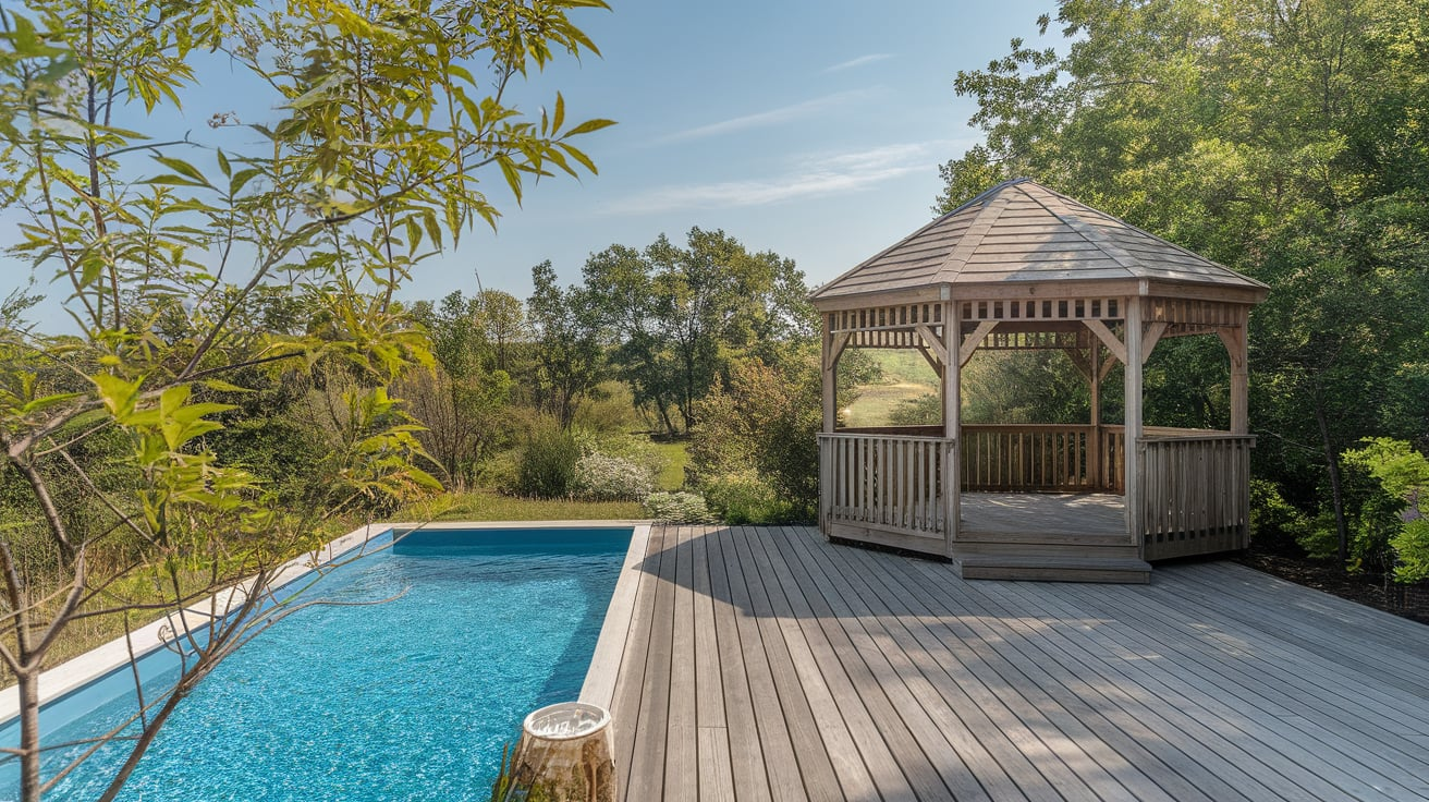 Picture this: You swim, get out, and instead of shivering, you’re drying off next to a roaring fire pit with friends. Add a semi-circle of lounge chairs, and suddenly, your pool area becomes the ultimate nighttime hangout.