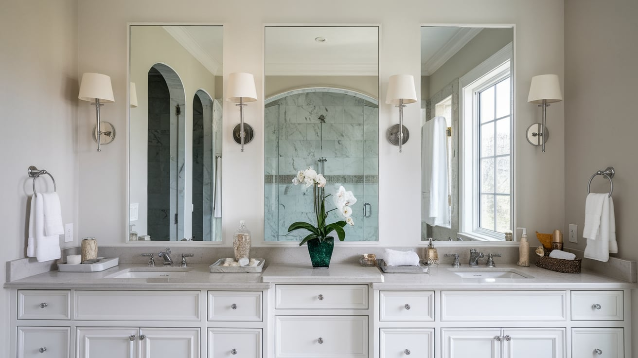 If you share your master bathroom, having two separate mirrors above a double vanity avoids elbow wars in the morning. Each person gets their own space, and it looks neat and intentional.