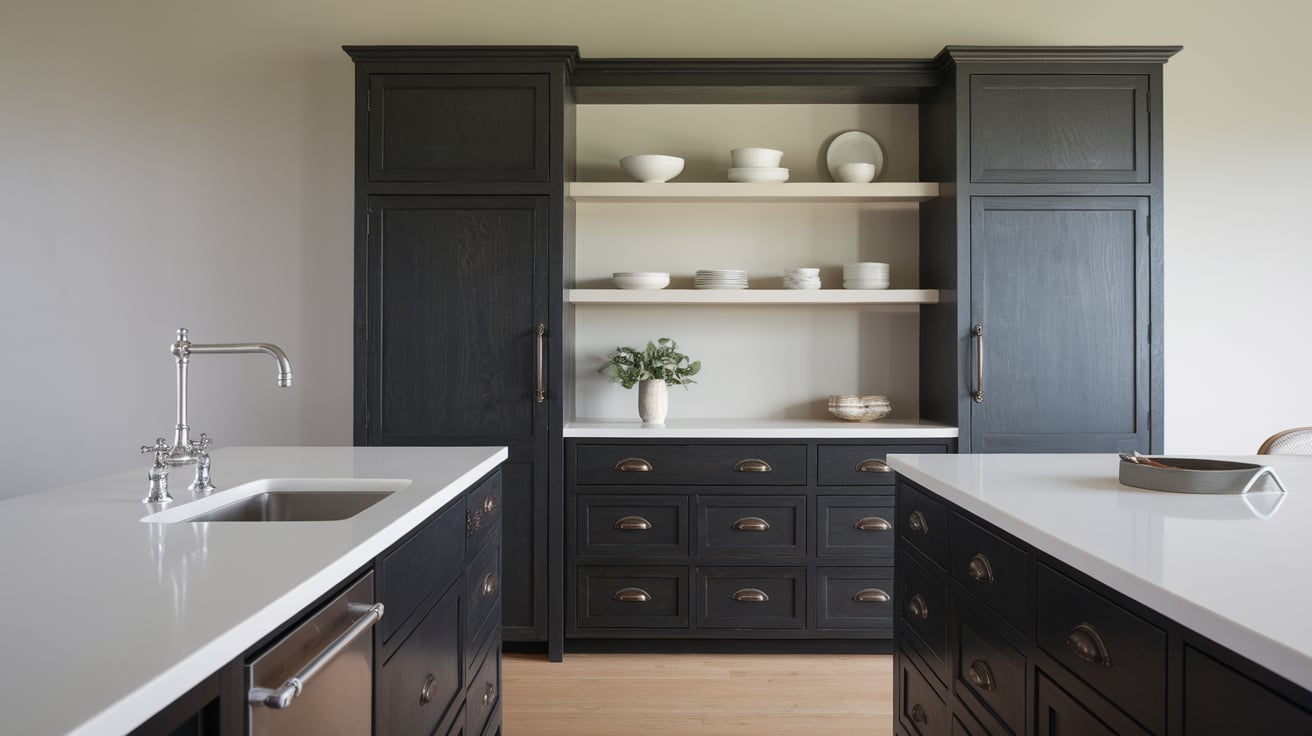 Minimal doesn’t mean empty. Instead of cluttering countertops, try open shelving with only essentials or curated items. The trick is restraint—think a stack of white plates, a few glass jars, or a single ceramic vase.