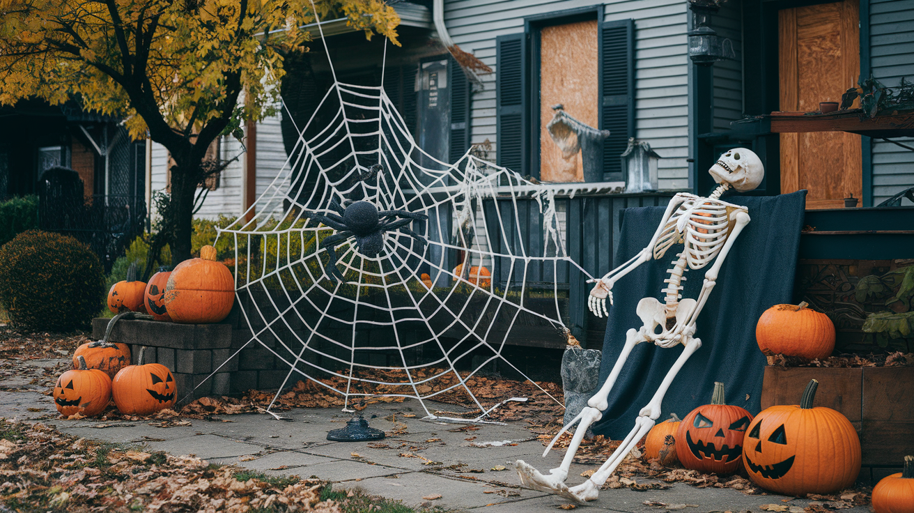 Use half-skeleton props and partially bury them in mulch or grass. Make it look like they’re clawing their way out from under your petunias. Pure Halloween drama.