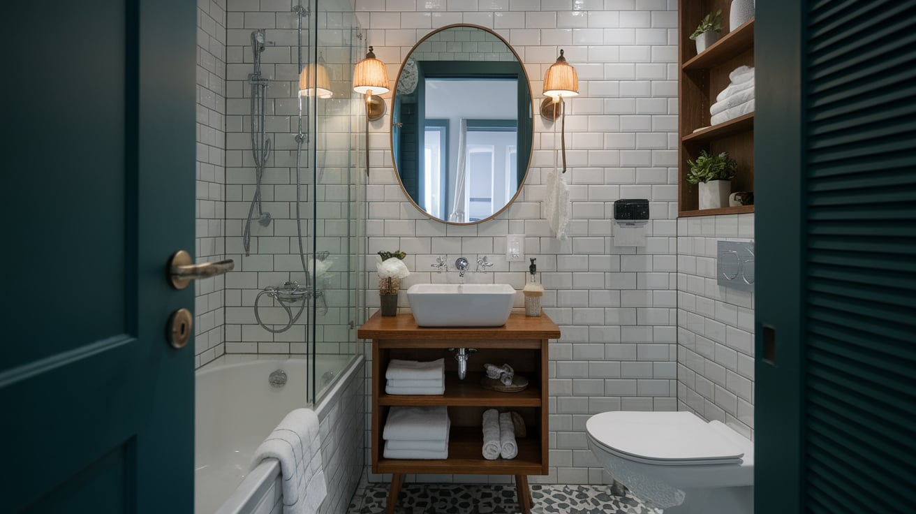Here’s a little secret: bold design works in small bathrooms. Statement tiles, whether patterned floors or a colorful backsplash, draw attention away from the size of the room and toward the design itself.