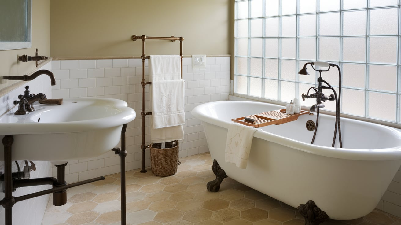 Spanish bathrooms are about relaxation, so a freestanding tub is a must if you have the space. Look for tubs with curves instead of sharp modern edges. A clawfoot tub or a smooth oval one gives that old-world charm while remaining luxurious.